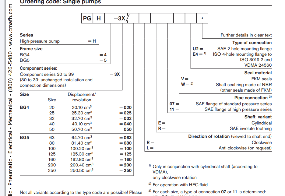 Frame Size 4: Nominal sizes 20, 25, 32, 40, 50, 63 (displacement range: 20.1 – 65.5 cm³/rev)