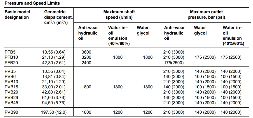 Operating Pressure Range: Up to 210 bar (3000 psi) for anti-wear hydraulic oil; specific values vary by model and fluid type