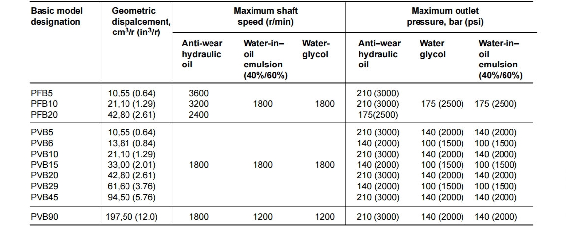 Do not exceed the maximum pressure and speed limits during operation; for PVB90 series, the maximum pressure must not exceed 210 bar (3000 psi) when using anti-wear hydraulic oil to ensure the service life of the pump.