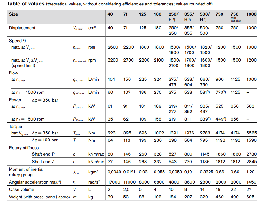 40 – 1000 cm³/rev (models include A4VSO40, A4VSO71, A4VSO125, A4VSO180, A4VSO250, A4VSO355, A4VSO500, A4VSO750, A4VSO1000)